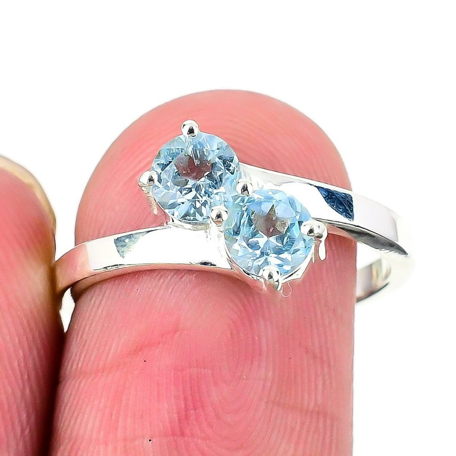 Natural Swiss Blue Topaz 925 Sterling Silver Statement Boho Ring Jewelry US 8