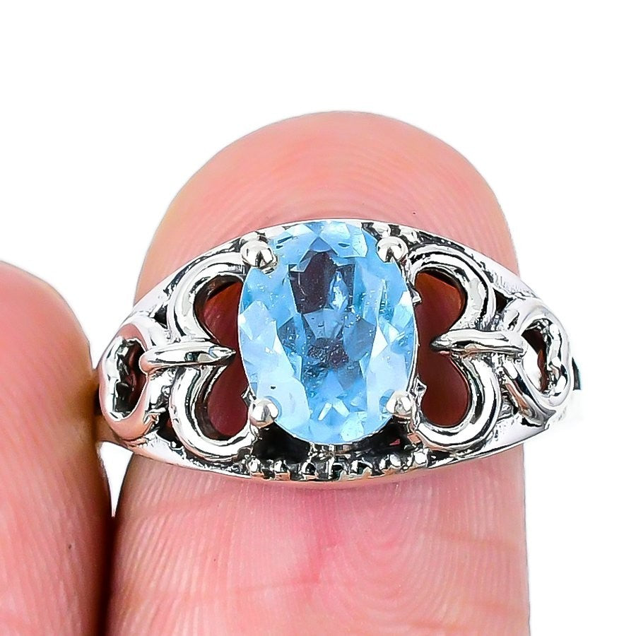 Natural Swiss Blue Topaz Solid Silver Statement Anniversary Mother New Ring US 7