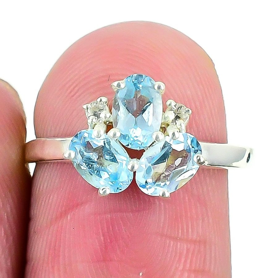 Natural Swiss Blue Topaz Solid Sterling Silver Cluster Boho Ring Jewelry Size 7