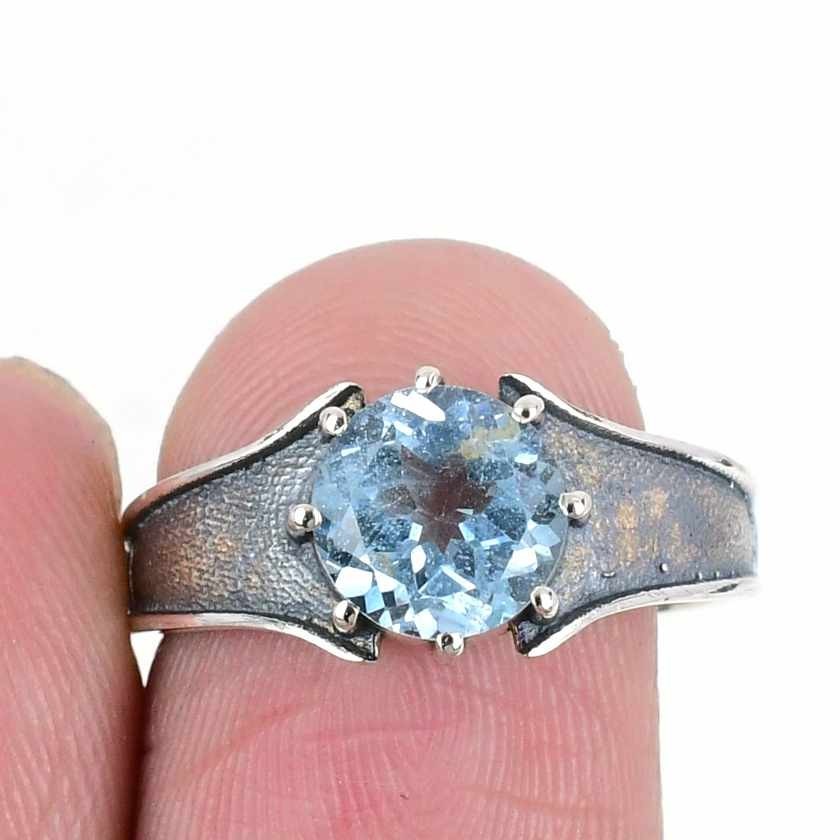 Elegant Natural Swiss Blue topaz Solid Sterling Silver in 92