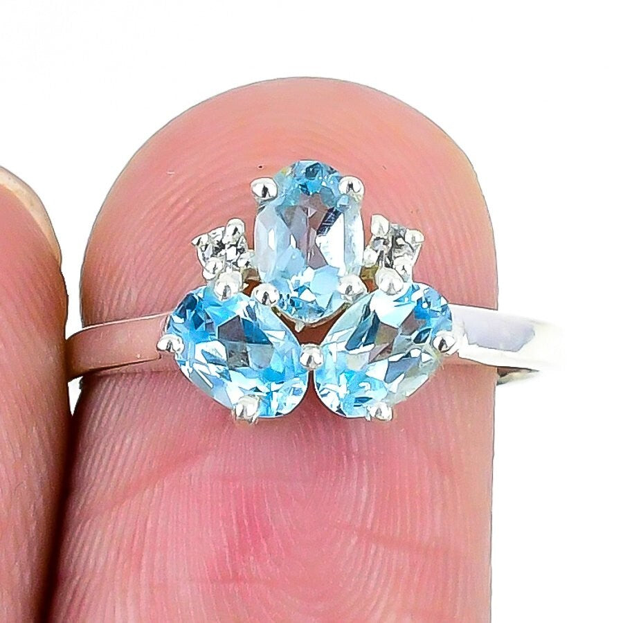 Natural Swiss Blue Topaz Statement Elegant Ring Jewelry 925 Solid Silver US 8