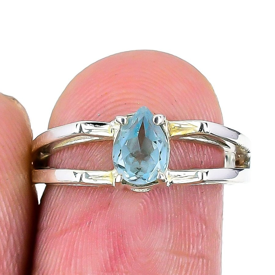 Natural Swiss Blue Topaz Statement Elegant Ring Jewelry 925 Sterling Silver US 7