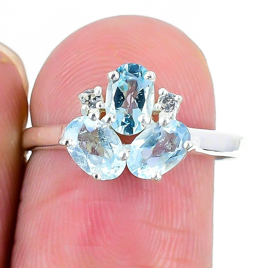 Natural Swiss Blue Topaz Sterling Silver Birthday Statement Ring Jewelry Size 8