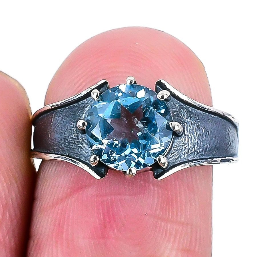 Natural Swiss Blue Topaz Sterling Silver Cluster Handmade Ring Jewelry Size 7