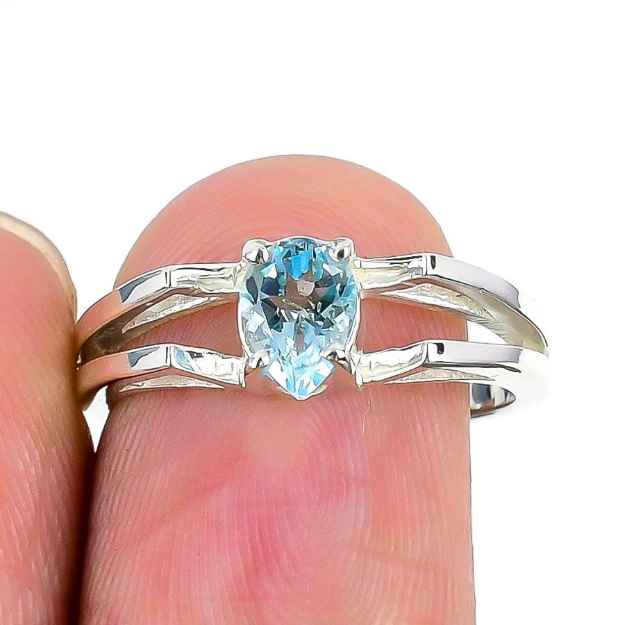 Natural Swiss Blue Topaz Sterling Silver Statement Bezel Mother New Ring US 7.5