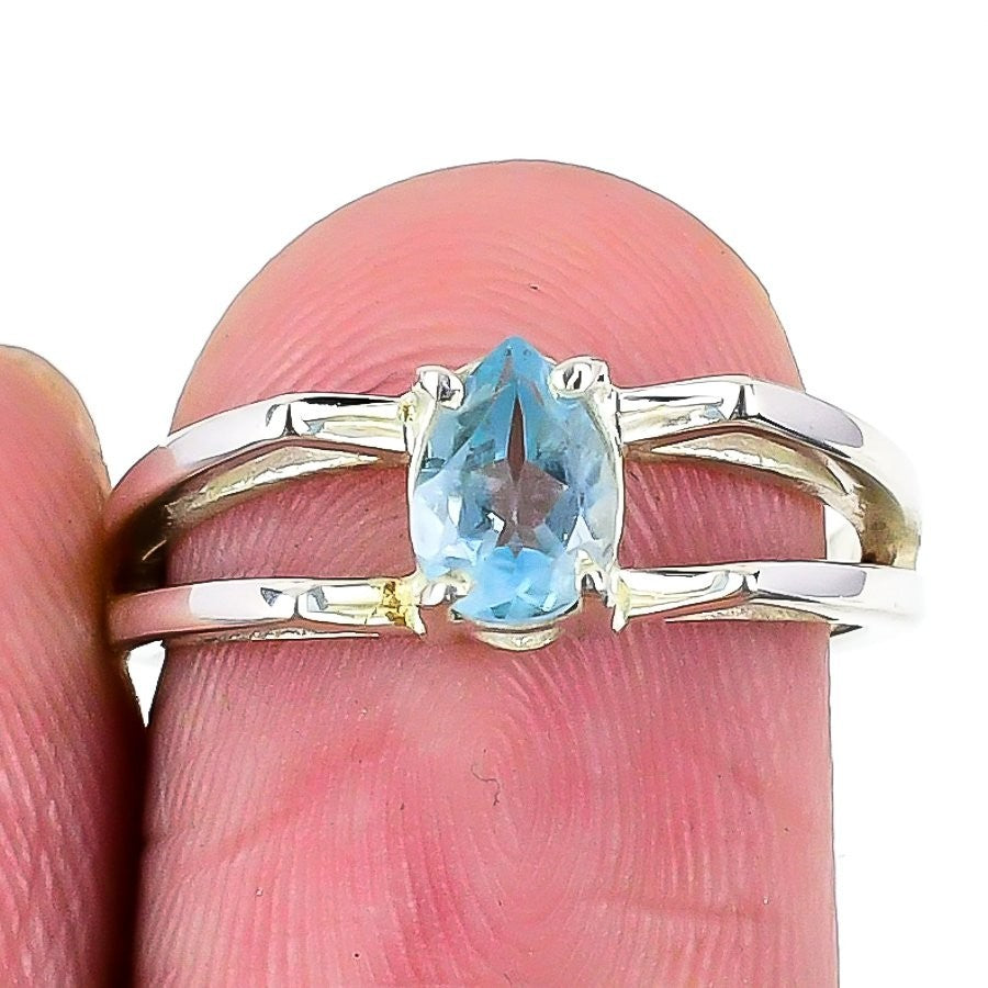 Natural Swiss Blue Topaz Sterling Silver Wife Ethnic Statement Ring Jewelry US 7