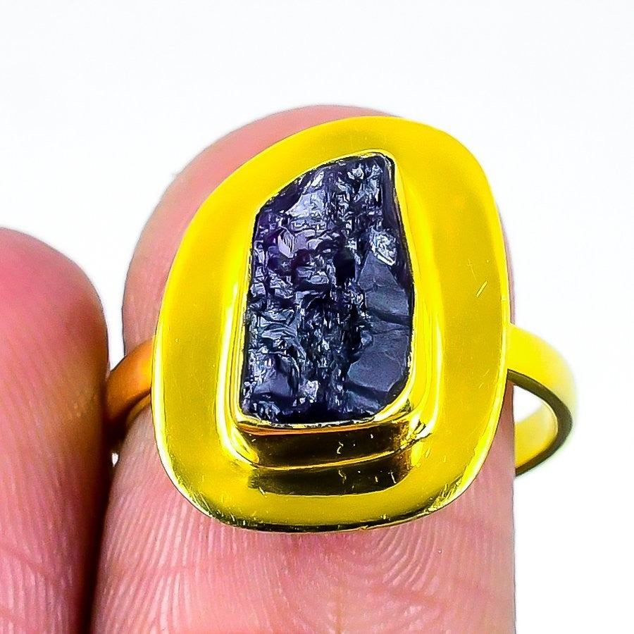 Natural Tanzanite 925 Solid Silver Handcrafted Handmade Band Wedding Ring Size 8