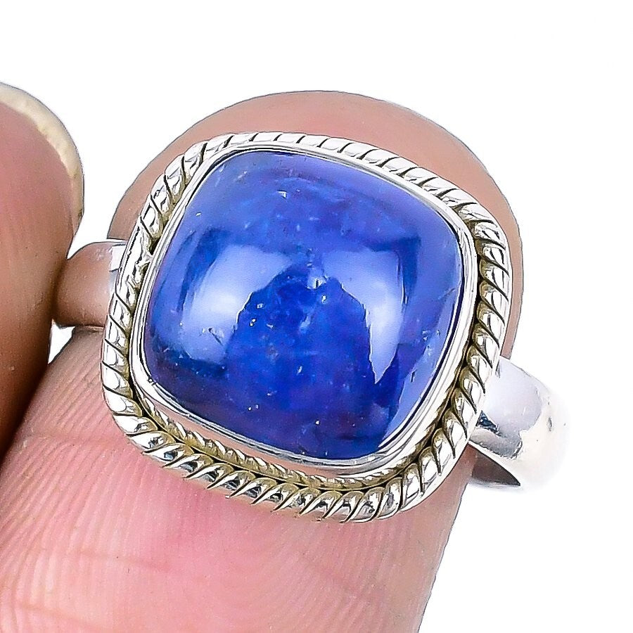 Natural Tanzanite 925 Solid Silver Handmade Statement Sister Ring Jewelry Size 8