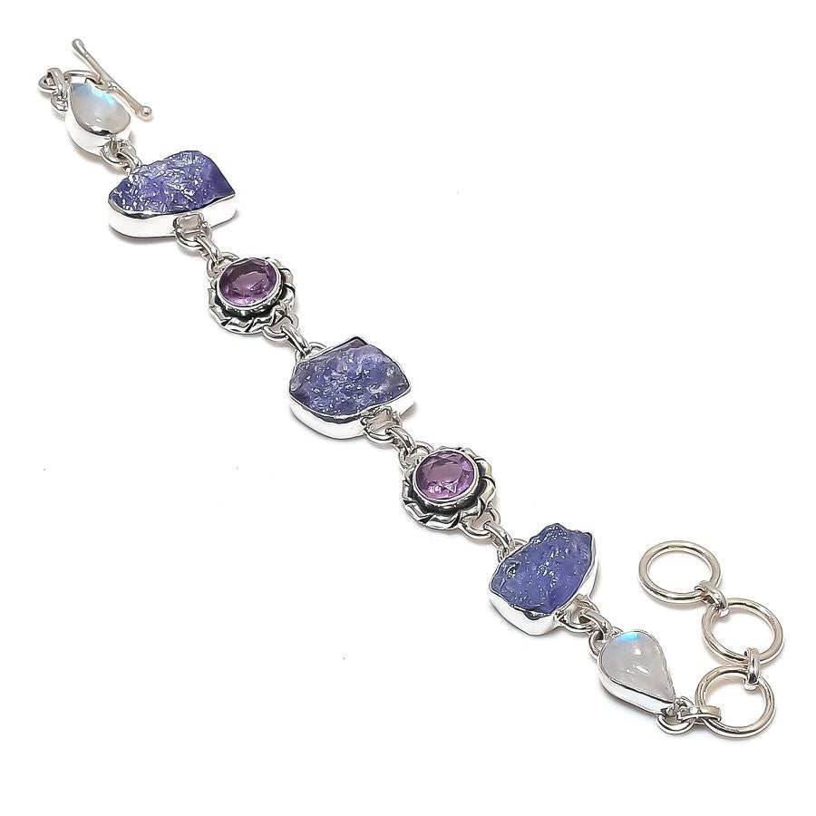 Natural Tanzanite Druzy 925 Sterling Silver Hook Wife Artisan Chain Bracelet
