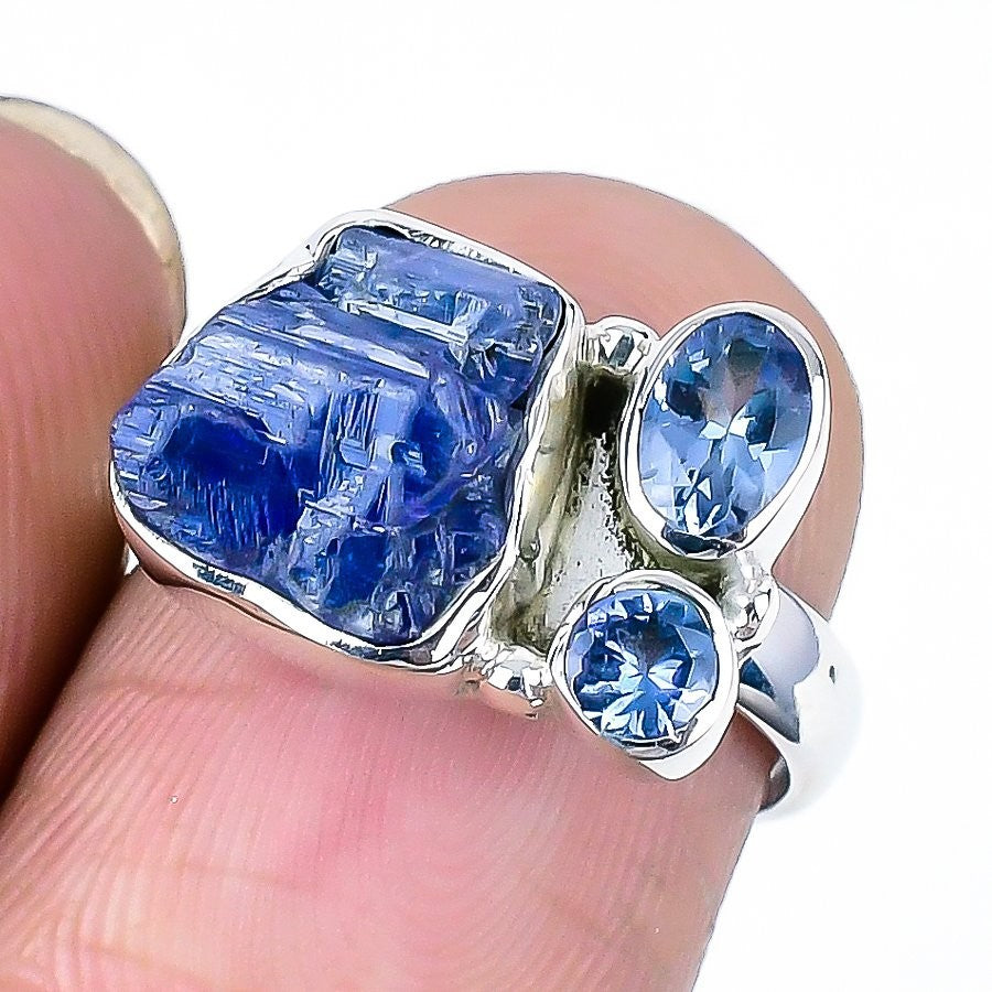 Natural Tanzanite Druzy Sterling Silver New Statement Handcrafted Daughter Ring