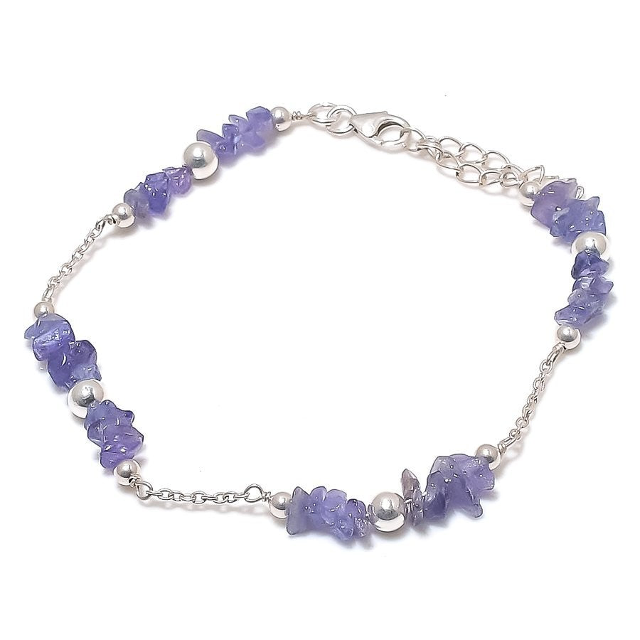 Natural Tanzanite Quartz Druzy 925 Silver Anniversary Sister Chain Boho Bracelet