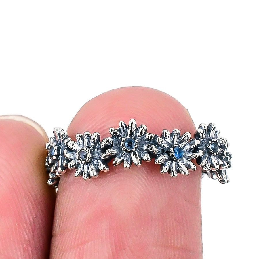 Natural Tanzanite Quartz Solid Sterling Silver Statement Sister Boho Ring US 6.5