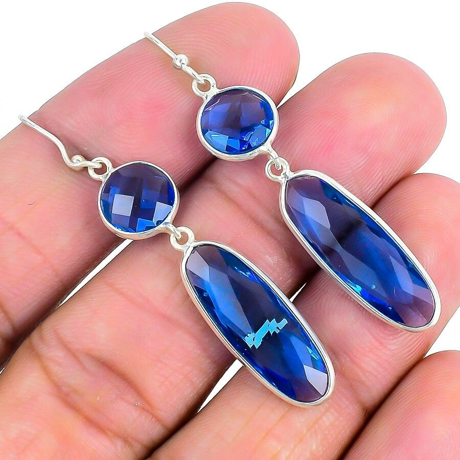 Natural Tanzanite Quartz Treated Trendy Dangle Drop New Earrings Sterling Silver