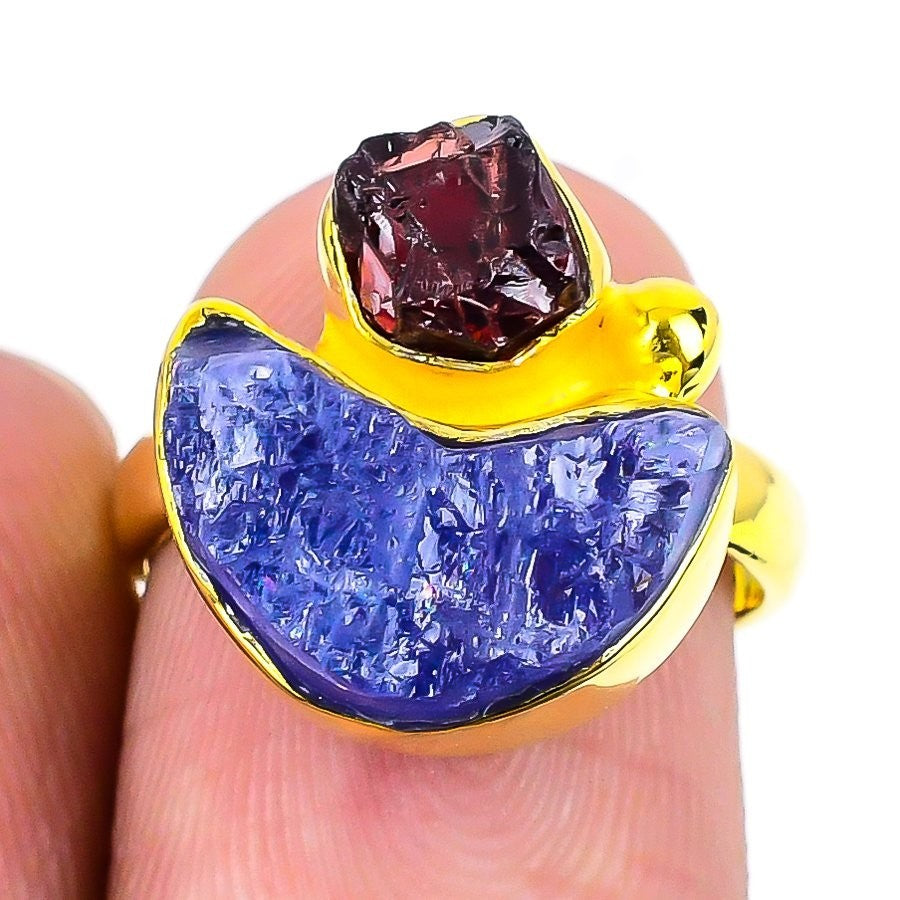 Natural Tanzanite Rough 925 Silver Mother Birthday Statement Ring Jewelry US 6.5