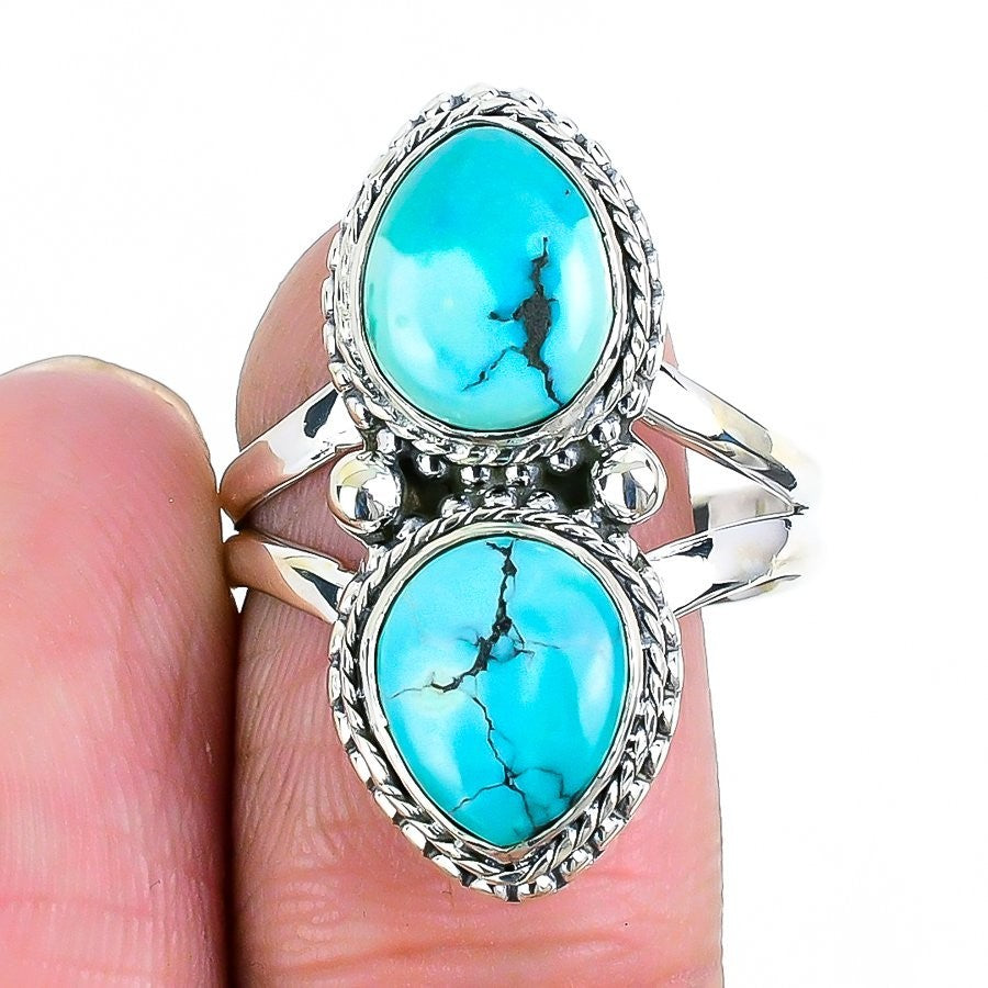 Natural Tibetan Turquoise 925 Silver Cluster Daughter New Ring Jewelry Size 10.5