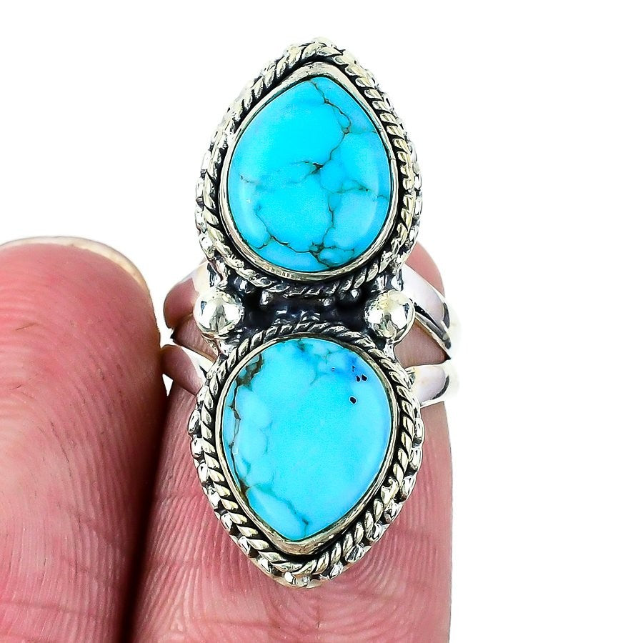 Natural Tibetan Turquoise 925 Sterling Silver Cluster Ethnic Ring Jewelry Size 4