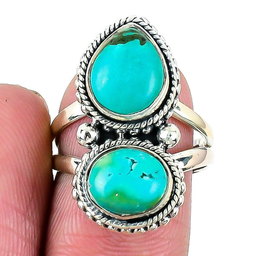 Natural Tibetan Turquoise 925 Sterling Silver Sister Statement Elegant Ring US 8