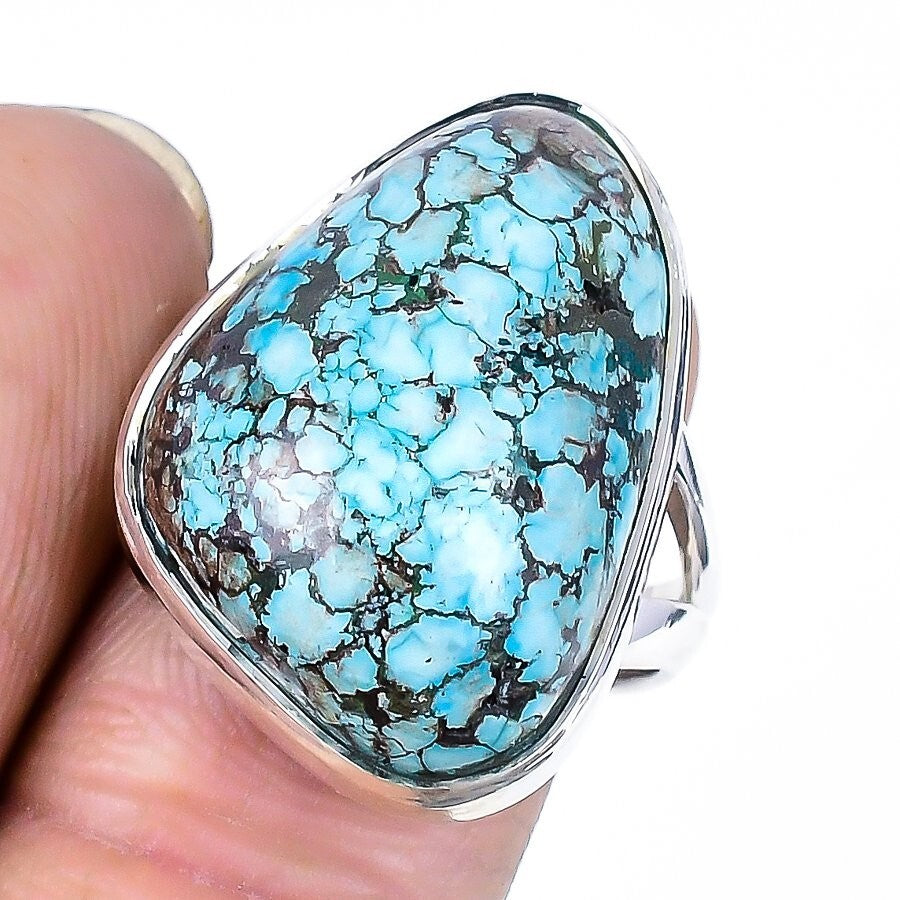 Natural Tibetan Turquoise Mother Artisan Statement Ethnic Ring 925 Solid Silver