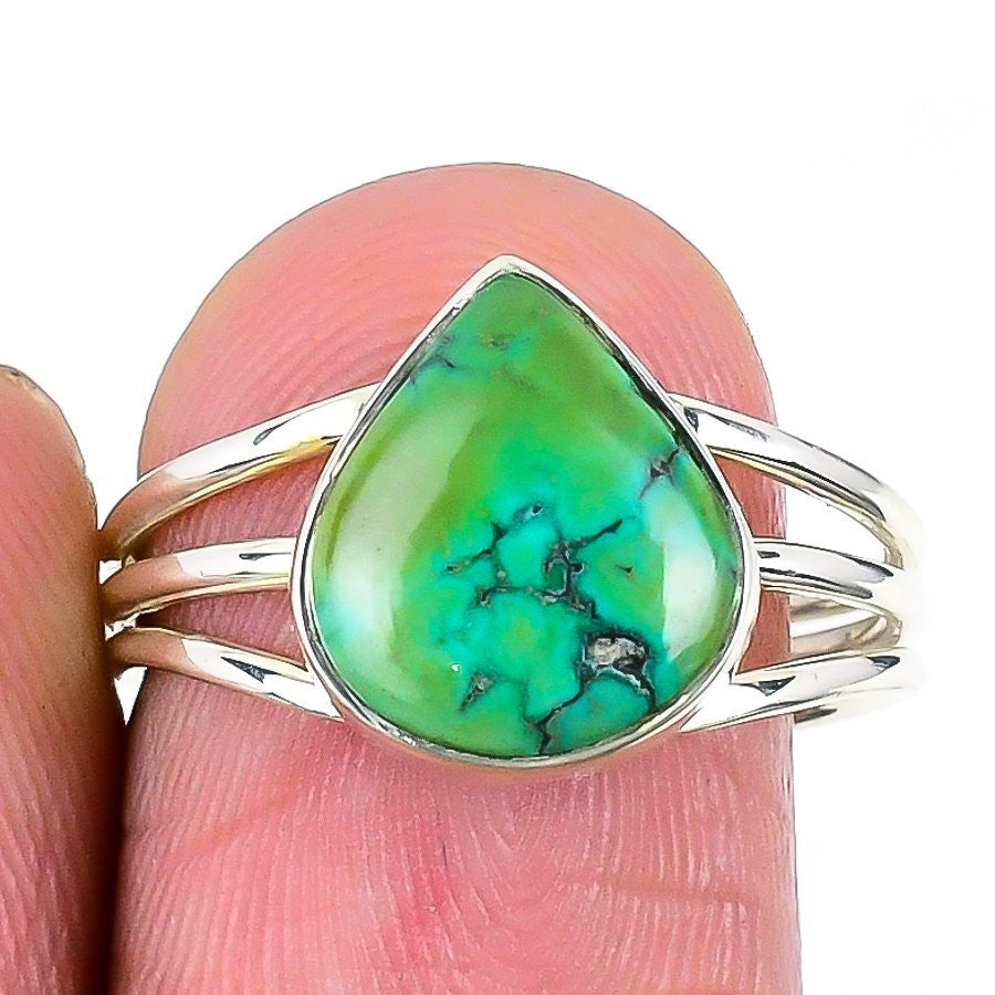 Natural Tibetan Turquoise Solid Silver Handcrafted Statement Ring Jewelry US 9