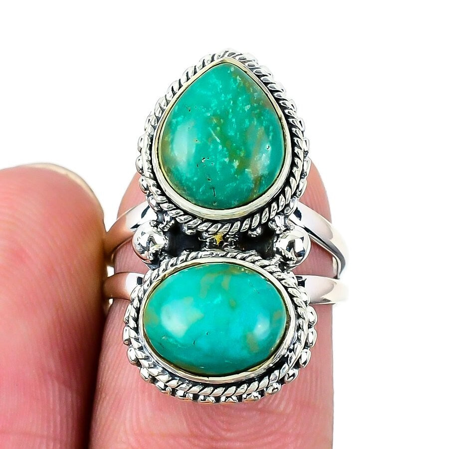 Natural Tibetan Turquoise Solid Sterling Silver Wife Statement Ring Jewelry US 6