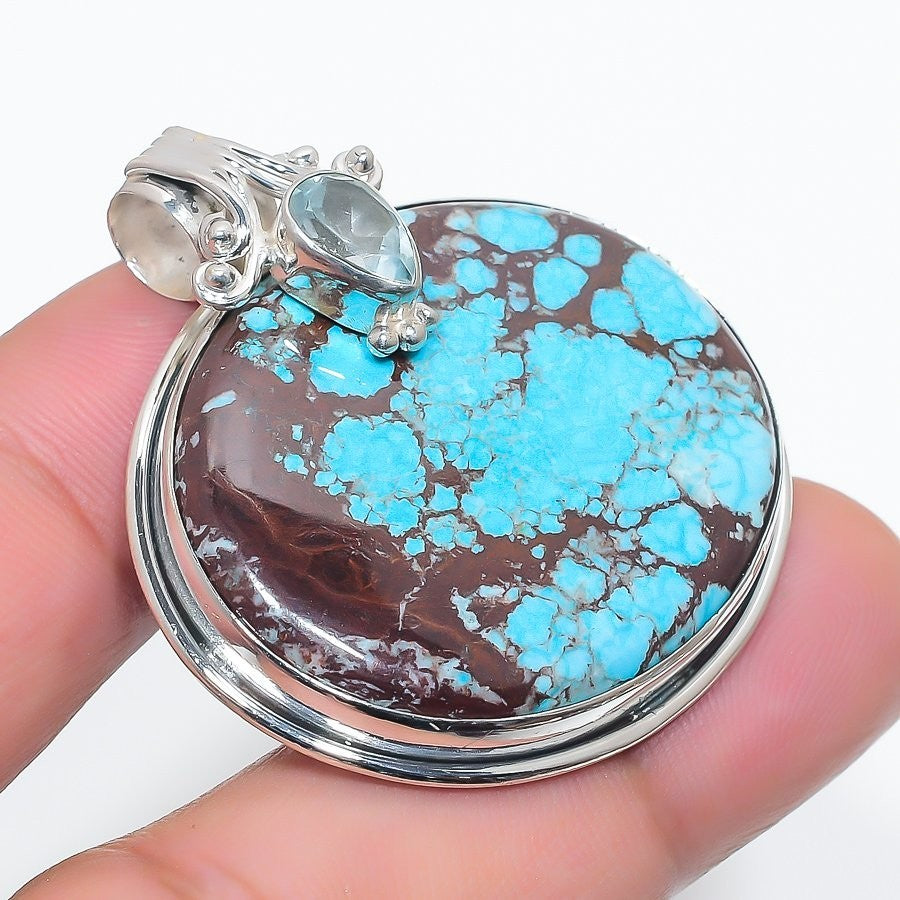 Natural Tibetan Turquoise Sterling Silver Daughter Artisan Throat Chakra Pendant