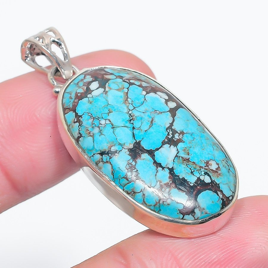 Natural Tibetan Turquoise Unique Anniversary Boho Pendant 925 Sterling Silver