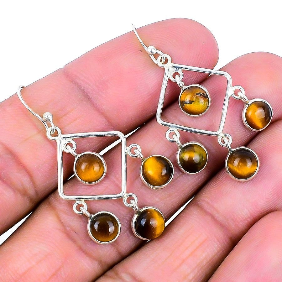 Elegant Natural Tiger Eye Daughter Wedding Dangle Earrings i