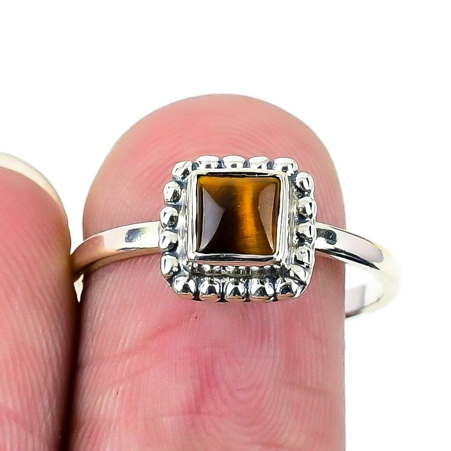 Natural Tiger Eye Mother Boho Statement Ring Jewelry 925 Sterling Silver US 8.5