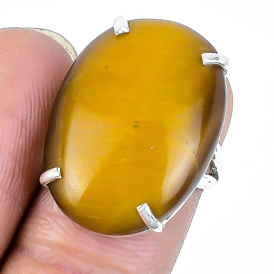 Natural Tiger Eye Statement Wife Sacral Chakra Elegant Ring 925 Sterling Silver