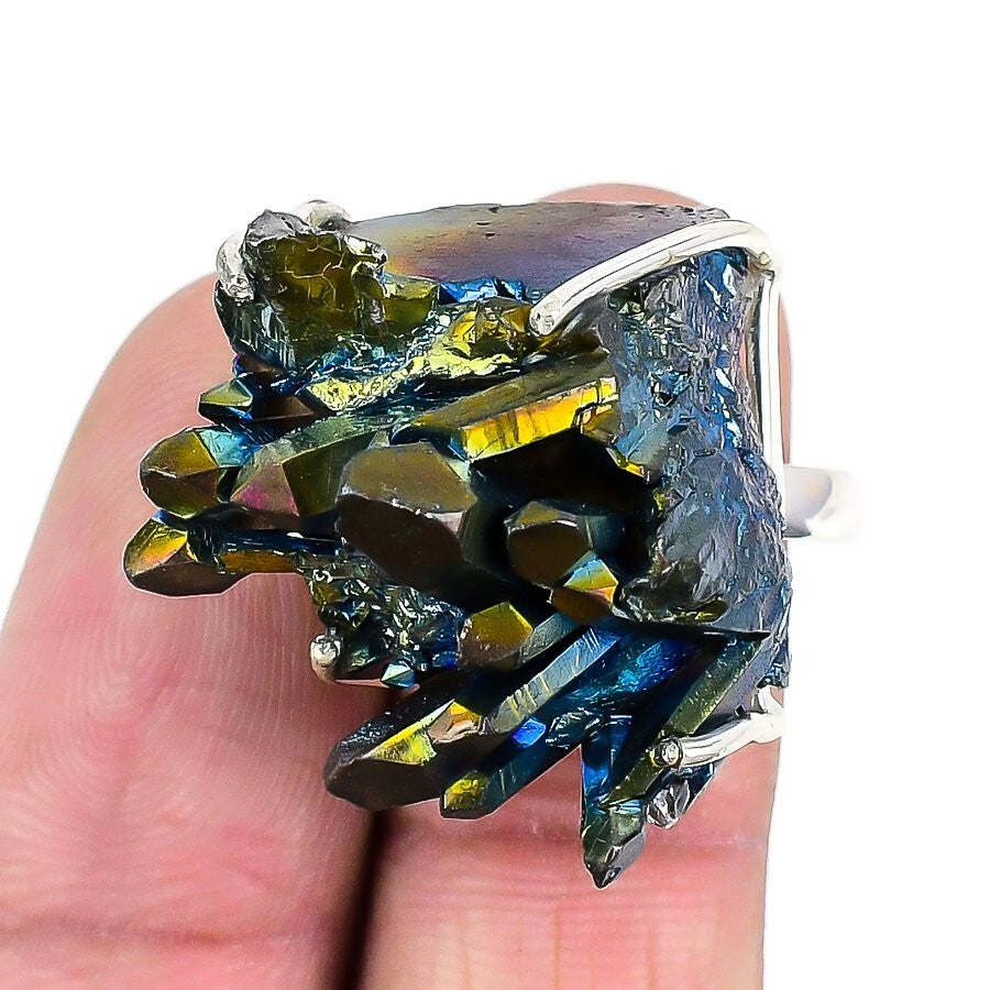 Natural Titanium Crystal Solid Sterling Silver Wife Wedding Statement Ring US 9