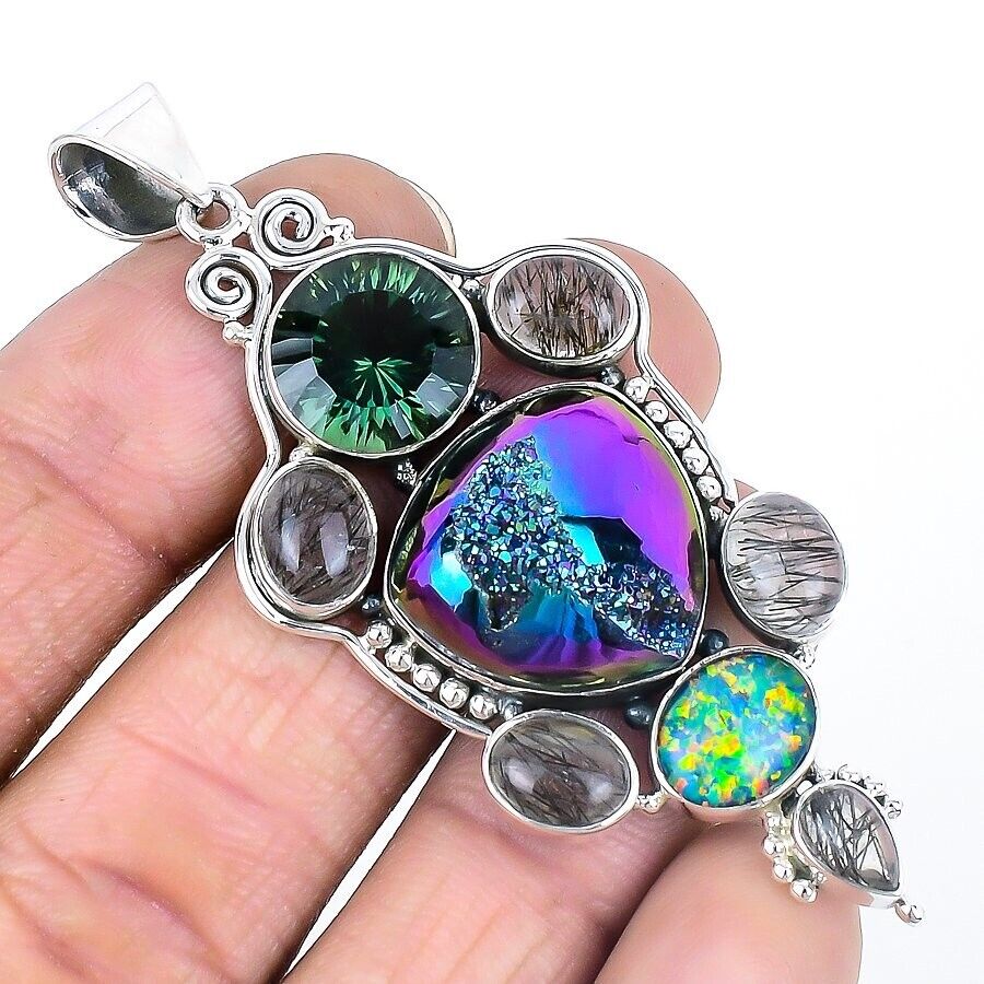 Natural Titanium Druzy Solid Silver Ethnic Mother Engagement New Pendant Jewelry