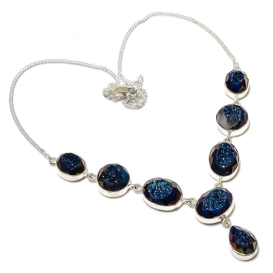 Natural Titanium Druzy Solid Sterling Silver Chain Wife Handcrafted New Necklace