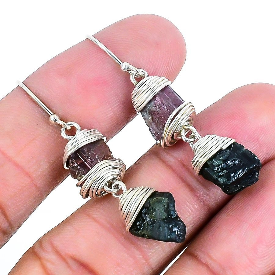 Natural Tourmaline rough Solid Sterling Silver Dangle Friend Gift New Earrings