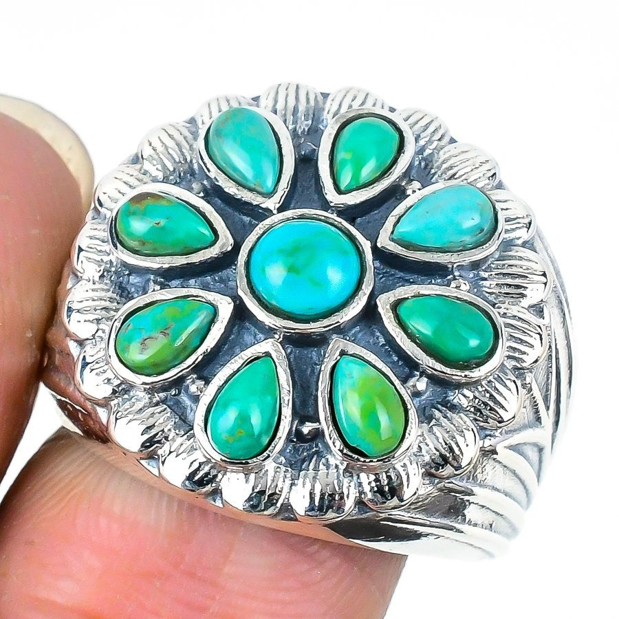 Natural Turquoise 925 Silver New Statement Ethnic Anniversary Ring Jewelry US 10