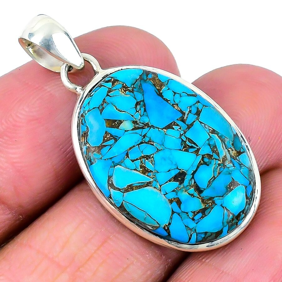 Natural Turquoise In Pyrite Solid Sterling Silver Engagement New Pendant Jewelry