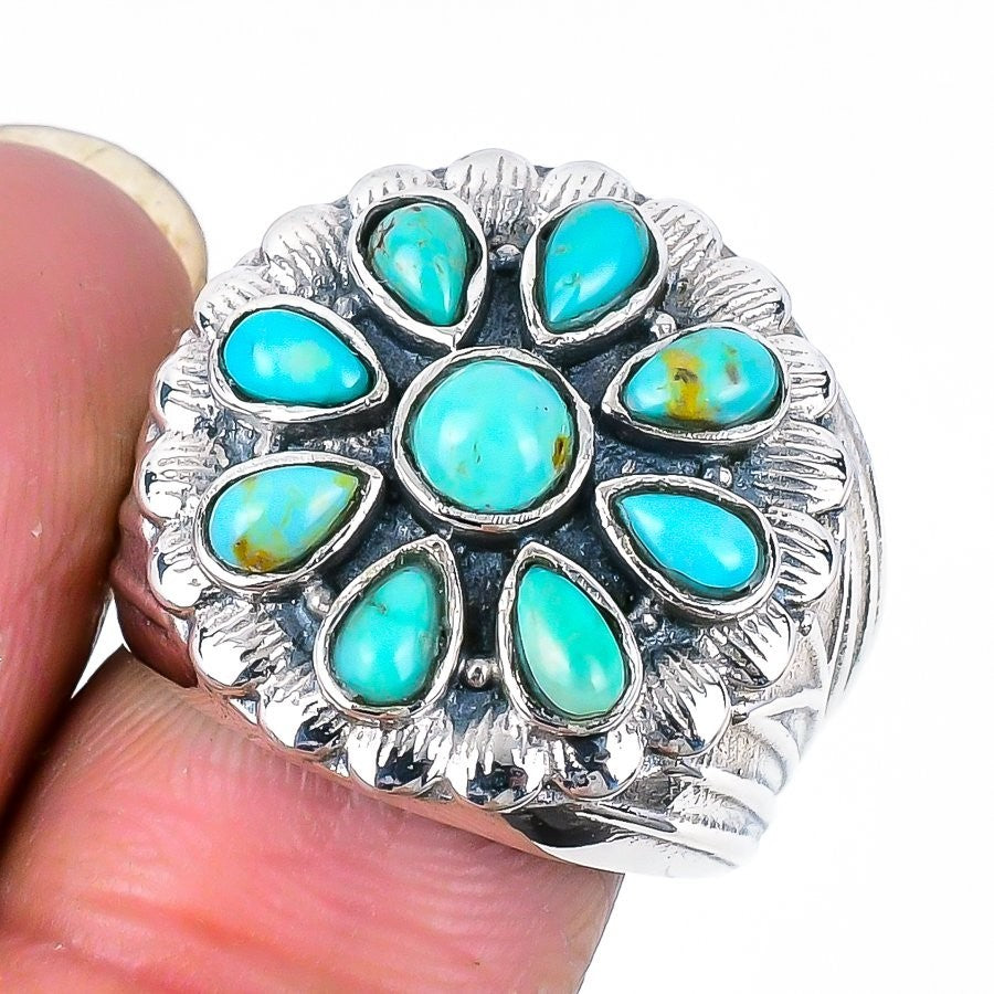 Natural Turquoise Sterling Silver Ethnic Statement Anniversary Wife Ring Size 9