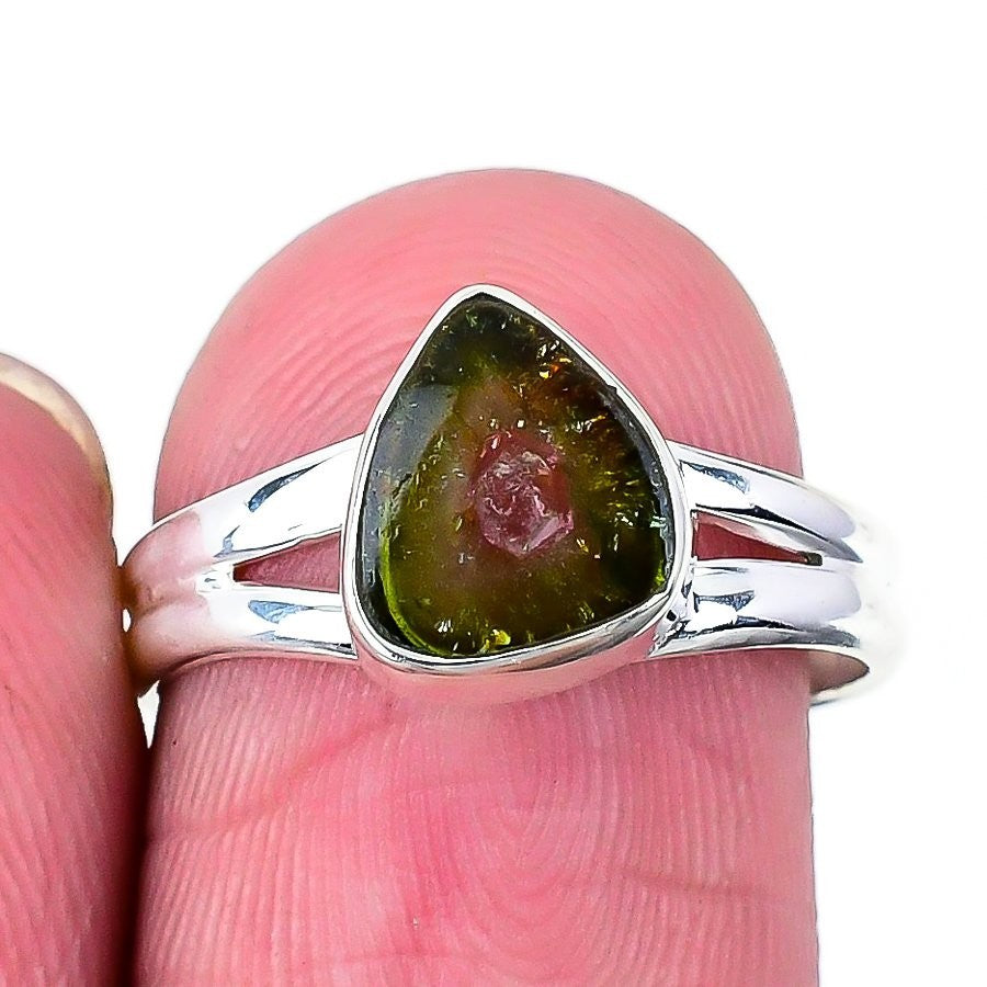 Natural Watermelon Tourmaline Solid Silver Channel Set Wife Cluster Ring Size 8