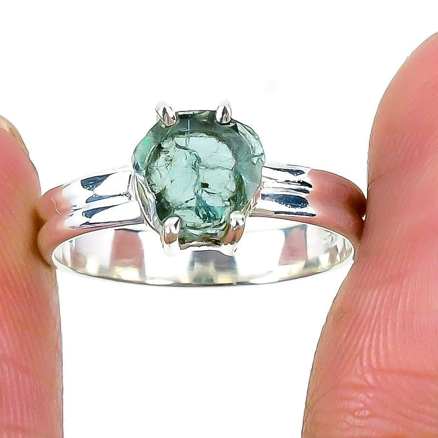 Natural Watermelon Tourmaline Statement New Boho Ring 925 Sterling Silver US 8.5