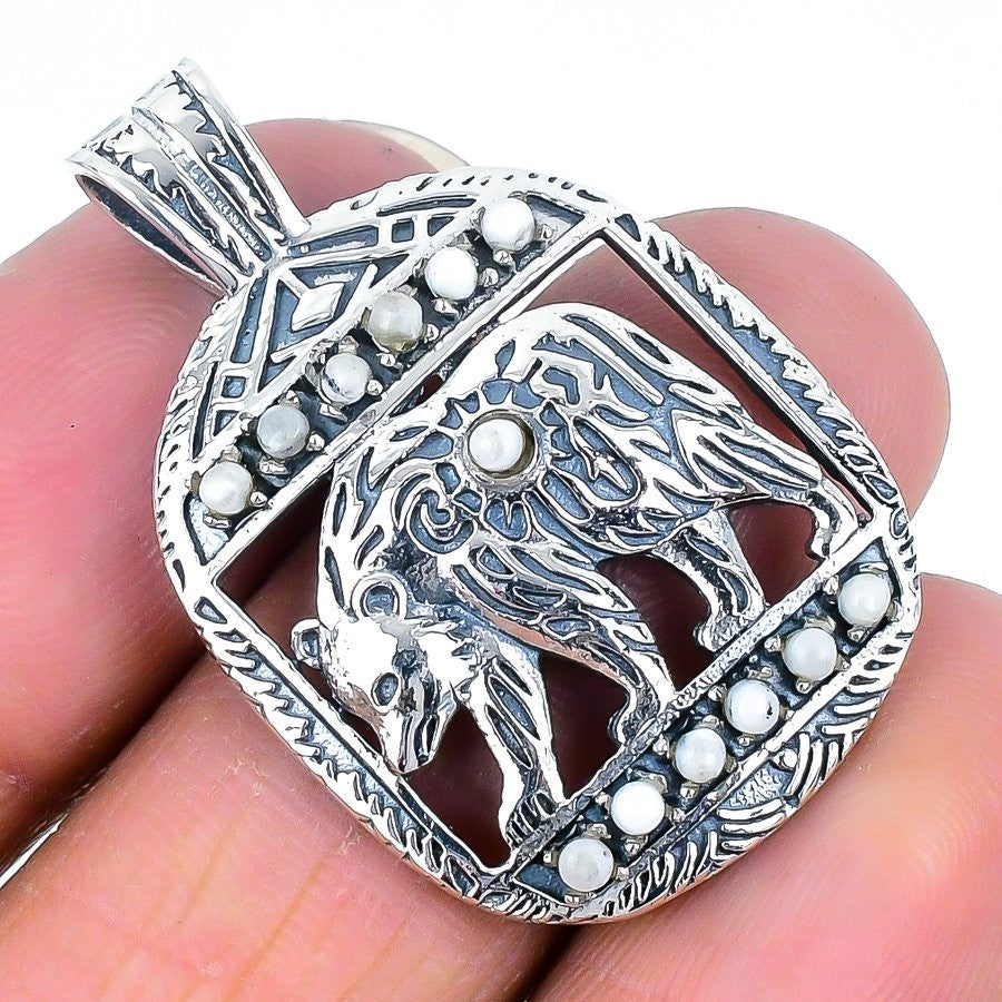 Natural White Buffalo Solid Silver Wife Anniversary Elegant Trendy Boho Pendant