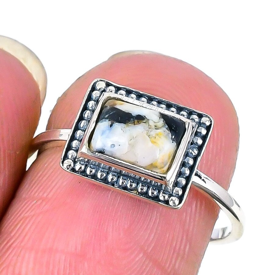 Natural White Buffalo Statement Mothers Gift Wife Ring Size 7 925 Solid Silver