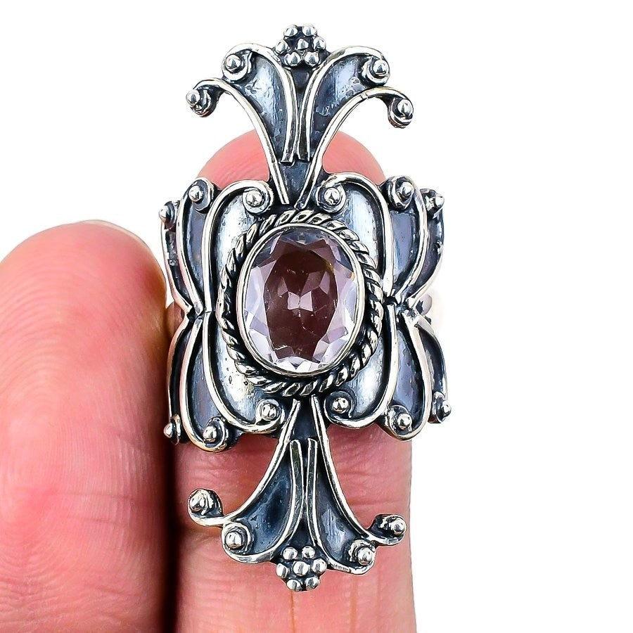 Natural White Topaz 925 Solid Silver Anniversary Statement Daughter Ring Size 8