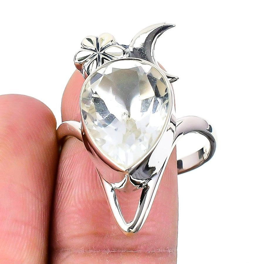 Natural White Topaz Statement Crown Chakra Ring Jewelry Size 11 Sterling Silver