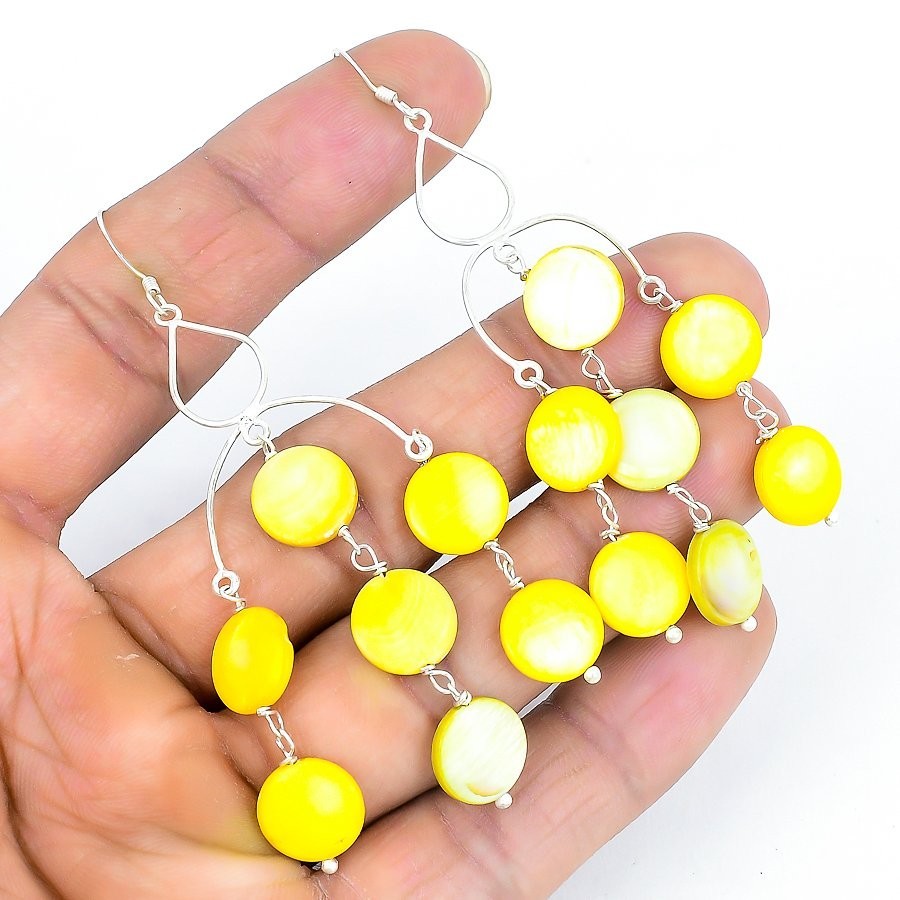 Natural Yellow Mother Of Pearl Solid Silver Sister New Dangling Earrings Jewelry