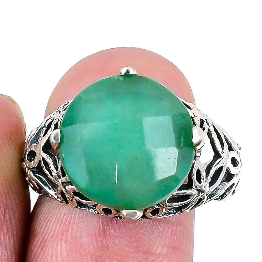 Natural Zambian Emerald Solid Silver Mother Boho Statement Birthday Ring US 8.5