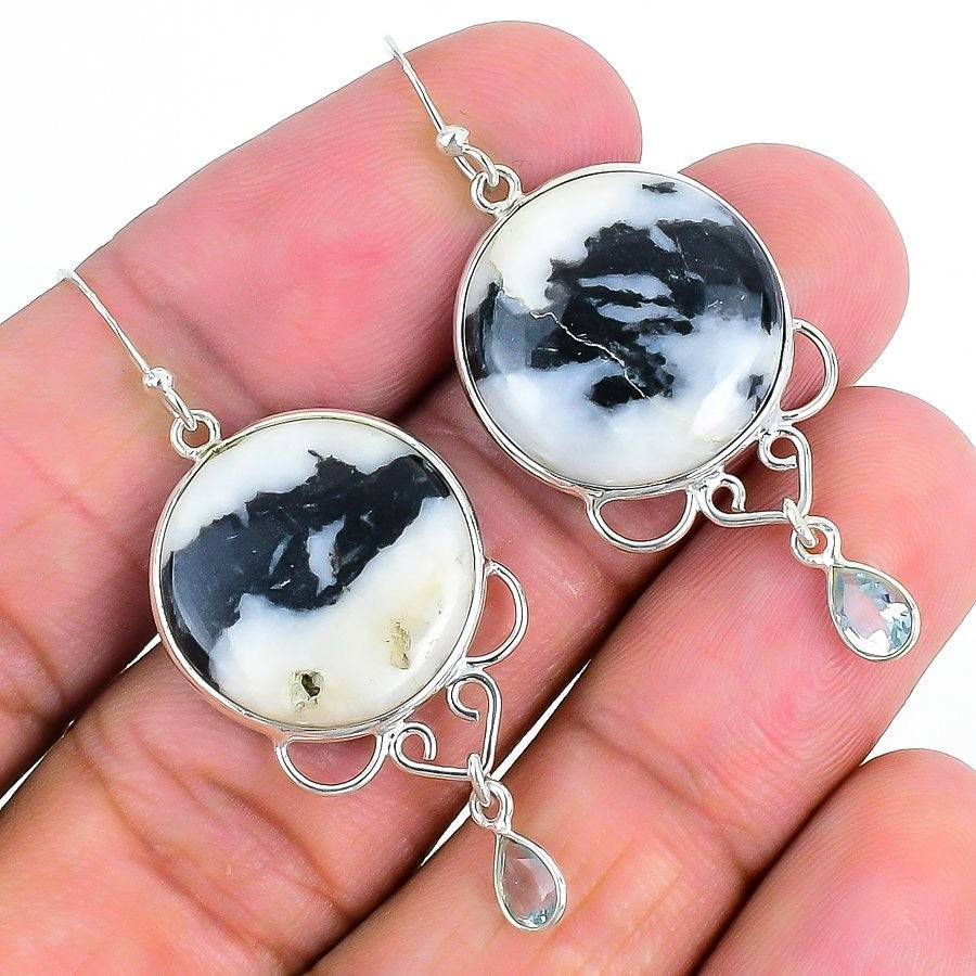 Elegant Natural Zebra Jasper Trendy New Drop Dangle in 925 S