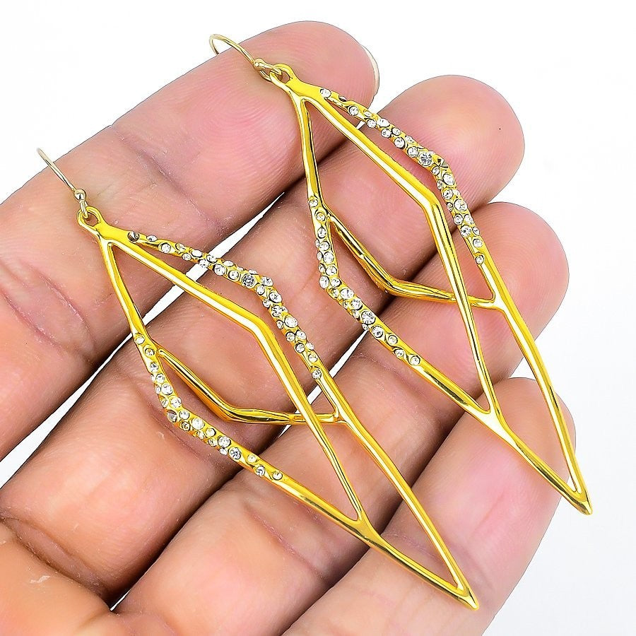 Natural Zircon Gold 925 Solid Silver Birthday Engagement Drop Earrings Jewelry