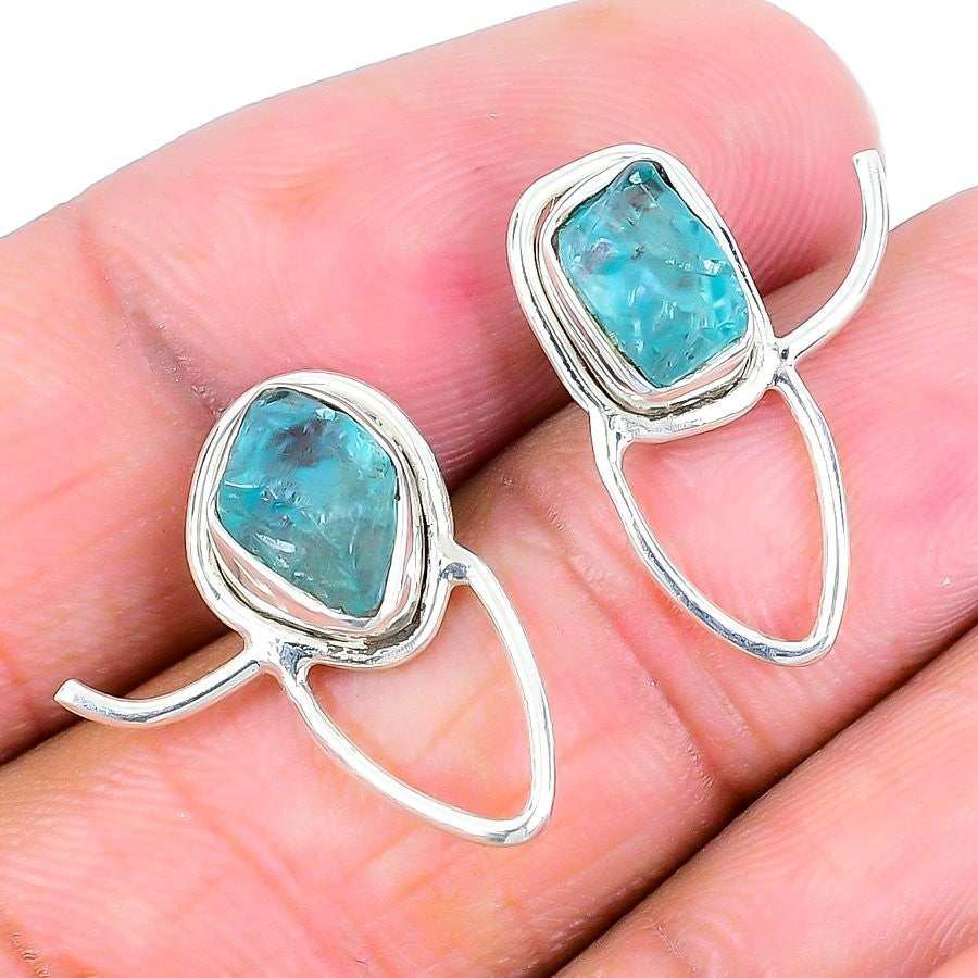 Neon Blue Apatite Gemstone 925 Solid Silver Dangle Drop Hook Earrings Jewelry