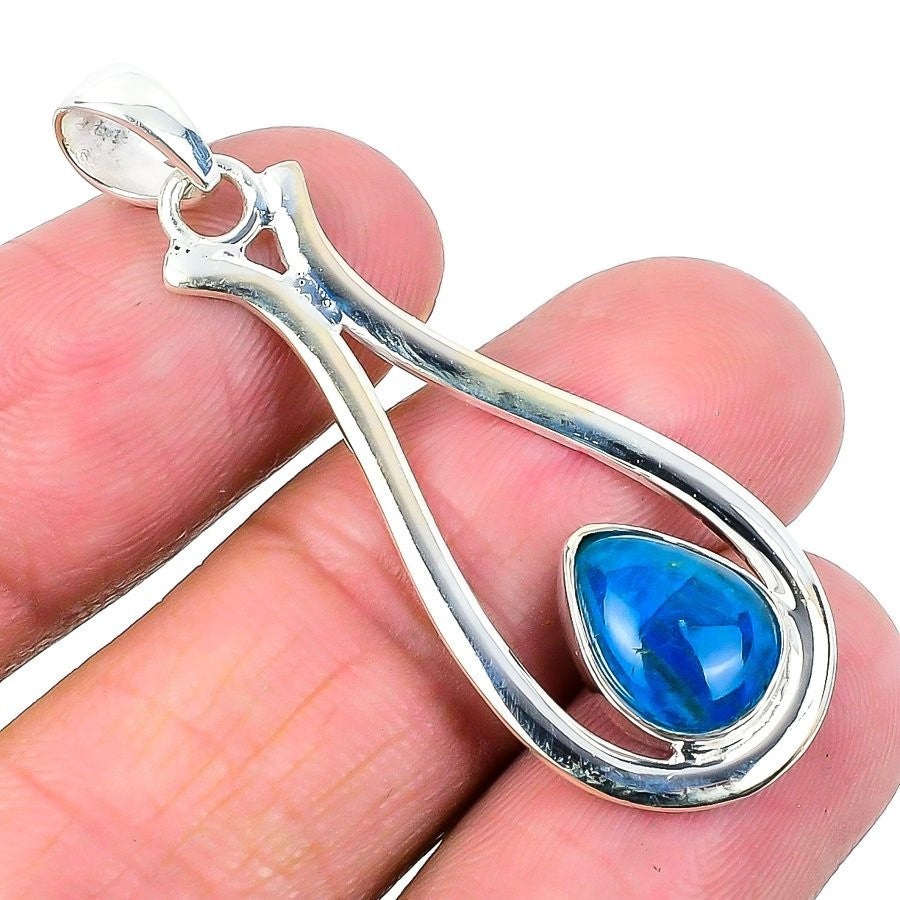 Neon Blue Apatite Stone Throat Chakra Mother Pendant Jewelry 925 Sterling Silver