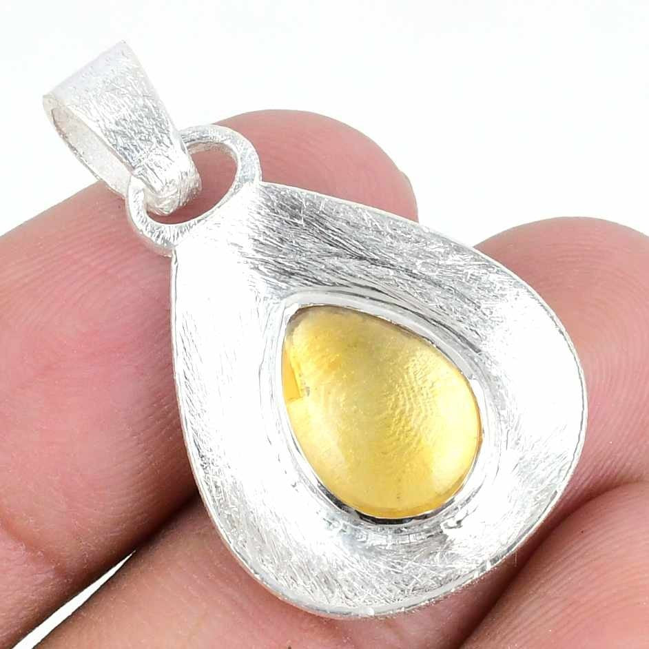 November Birth Citrine Gemstone 925 Solid Silver Anniversary Trendy Wife Pendant