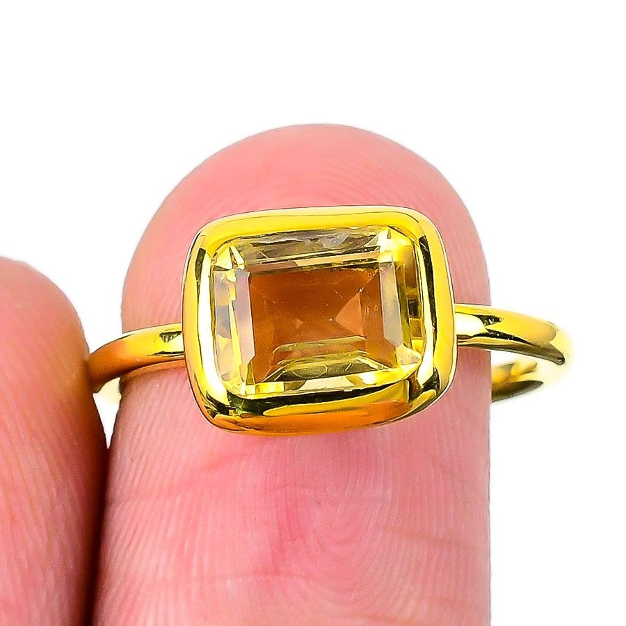 November Birth Citrine Stone Statement Handmade Ring 925 Sterling Silver US 8